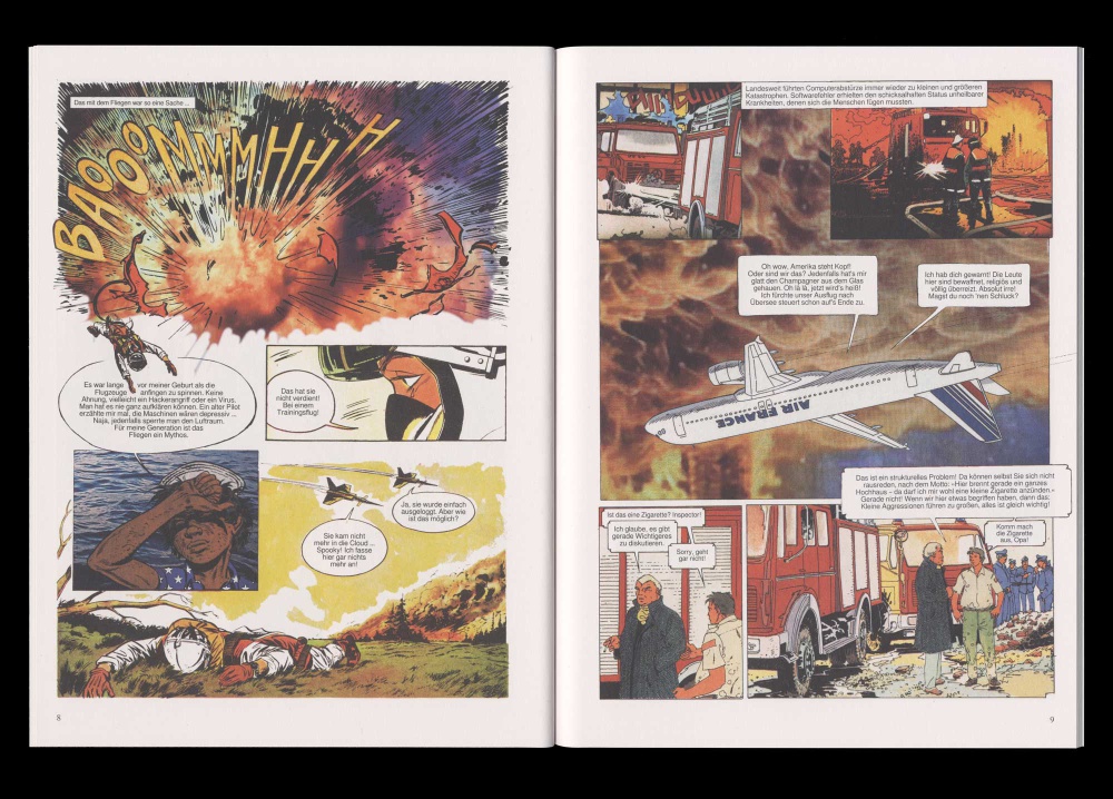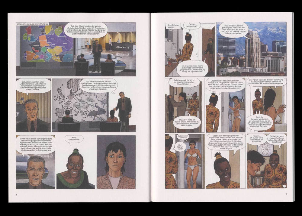 In Die Dekolonisierung Amerikas erzählt Steffen Zillig eine fiktive Zukunft aus kleinteilig collagierten Versatzstücken der Populärkultur. Dafür kombiniert er Ausschnitte aus alten und neuen Abenteuercomics mit verwaschenen Fotografien aus dem Internet. Dazwischen entspinnt sich eine Sozialfantasie, deren abenteuerliche Verwerfungen und Konfliktlinien denen der Gegenwart verblüffend ähnlich werden.